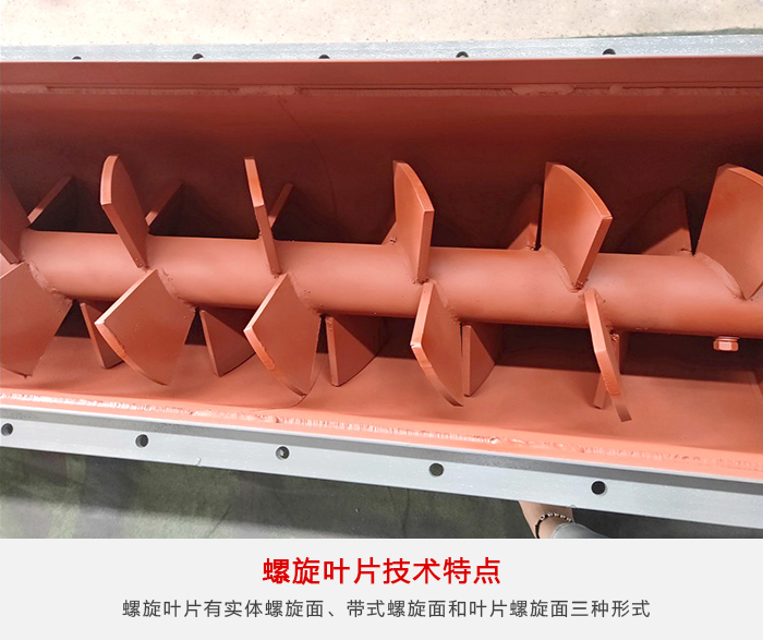 螺旋輸送機一般由輸送機本體、進出料口及驅動裝置三大部分組成;螺旋輸送機的螺旋葉片有實體螺旋面、帶式螺旋面和葉片螺旋面三種形式,其中,葉片式螺旋面應用相對較少,主要用于輸送粘度較大和可壓縮性物料,這種螺懸面型,在完成輸送作業過程中,同時具有并完成對物料的攪拌、混合等功能。