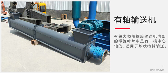 從內(nèi)部構(gòu)造來說,有軸大傾角螺旋輸送機內(nèi)部的螺旋葉片中是有一根中心軸的,這根中心軸可以幫助輸送機提升效率且防止物料堆積滑落。其適用于散狀物料的輸送。