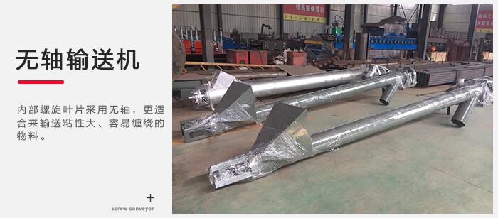 而無軸大傾角螺旋輸送機與有軸的恰恰相反,內(nèi)部螺旋葉片采用無軸,更適合來輸送粘性大、容易纏繞的物料,這是有軸輸送機做不到的。