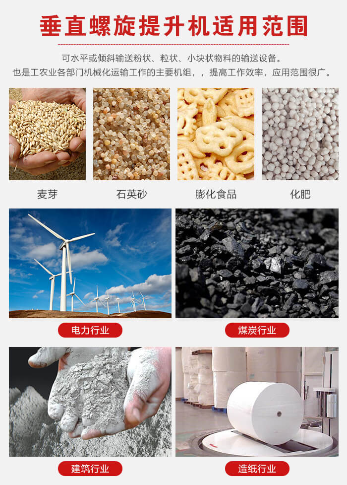 螺旋垂直提升機是用來水平或傾斜輸送粉狀、粒狀、小塊狀物料的一般用途的輸送設(shè)備, 螺旋輸送給料機是工農(nóng)業(yè)各部門機械化運輸工作的主要機組,可使運輸工作減輕勞動強度,提高工作效率,應(yīng)用范圍很廣。