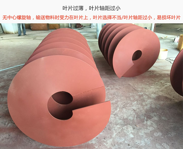 葉片軸距過小:螺旋槽體選擇不當(dāng),輸送物料的時葉片軸距過小,會造成擠壓力過大,損傷葉片;若槽體較小,同樣也會造成壓力過大,導(dǎo)致葉片損害。