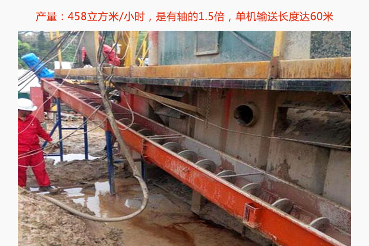 輸送量大,距離長:無軸螺旋輸送機產(chǎn)量達458立方米/小時,是有軸的1.5倍,扭矩可達4000N.m,單機輸送長度達60米。