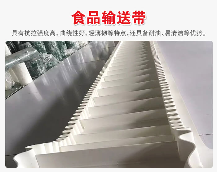 食品輸送帶材質(zhì)有PVC、聚乙烯、聚炳稀、PP、塑鋼ACETAL、PE、尼龍、PA等,按照具體食品都有相應(yīng)的專用輸送,除了具有抗拉強(qiáng)度高、曲繞性好、輕薄韌等特點(diǎn)外,還具備耐油、衛(wèi)生、干凈衛(wèi)生、易清潔等優(yōu)勢(shì),是食品行業(yè)理想的輸送帶。