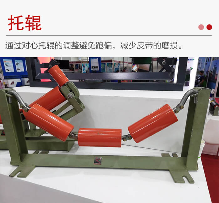 作用:①用戶可以通過對(duì)心托輥的調(diào)整,來決定橫向位置,避免物料在輸送過程中跑偏,②緩沖托輥裝在受料處,以減小物料對(duì)皮帶的沖擊,減少皮帶的磨損。