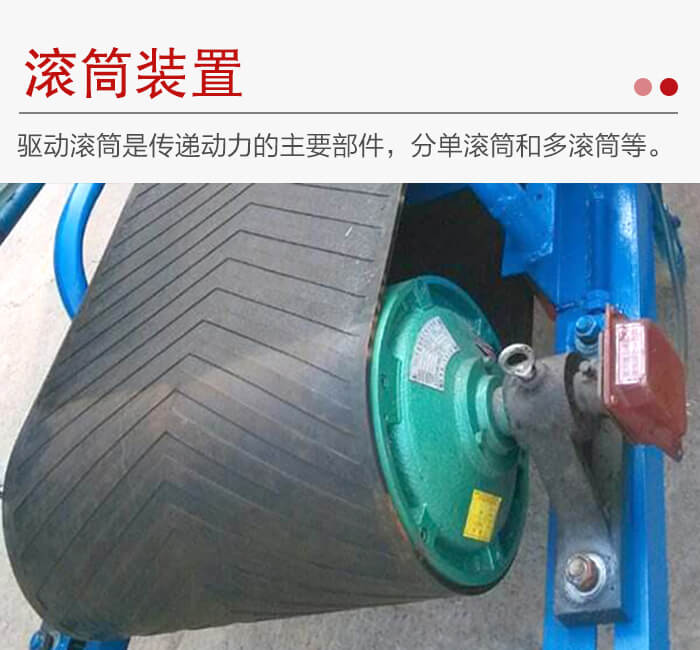 皮帶輸送機(jī)滾筒裝置分為驅(qū)動(dòng)滾筒和改向滾筒。驅(qū)動(dòng)滾筒是傳遞動(dòng)力的主要部件,分單滾筒(膠帶對(duì)滾筒的包角為210°至230°)、雙滾筒(包角達(dá)350°)和多滾筒(用于大功率)等。